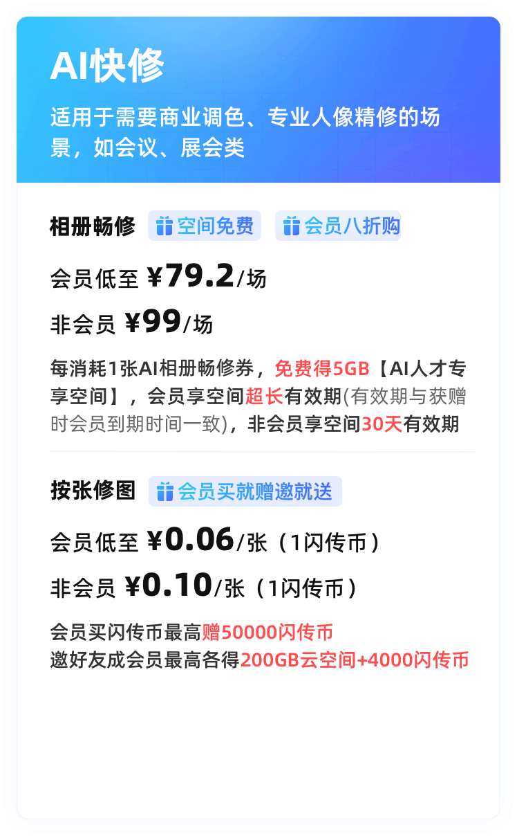按张修图不限相册不限类型,会员低至 ¥0.06/张